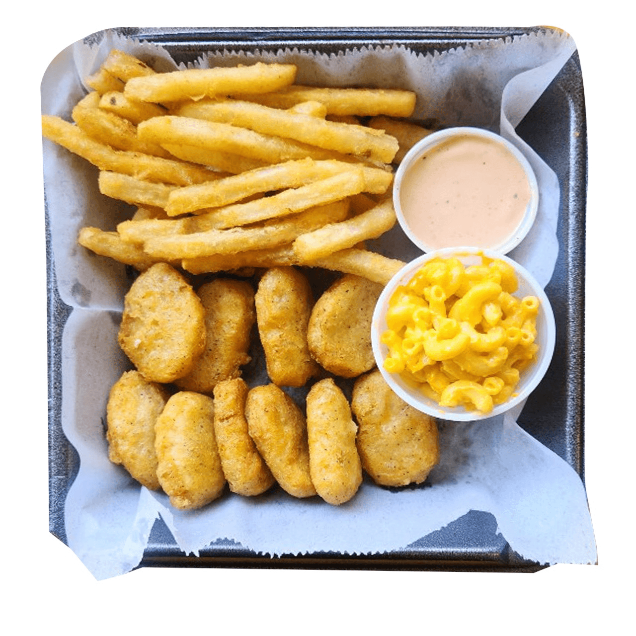 10 pcs Chicken Nuggets + 4 oz Mac & Cheese + Small French Fries + 1 dip