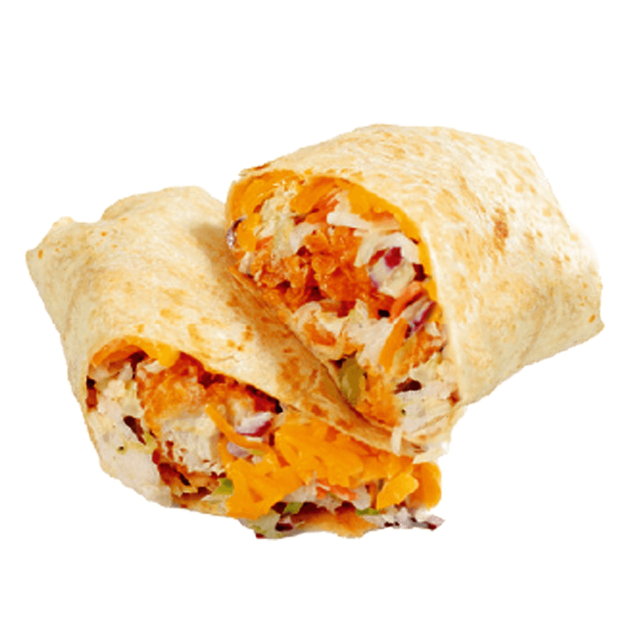 2 Chicken Tenders Burrito (1 Hot level) comes with Mac & Cheese or Coleslaw (inside Burrito)